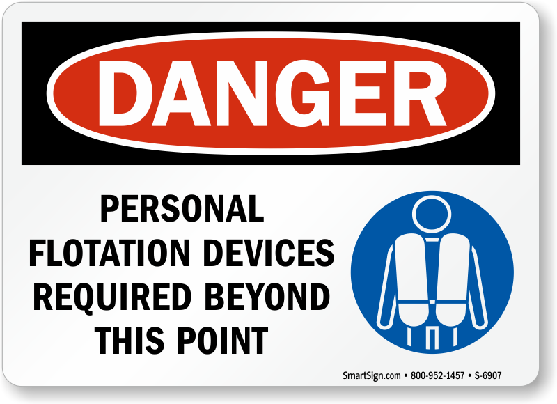 Places where there is a danger of drowning in water, workers are recommended to wear personal flotation devices to helps them keep afloat. Use this OSHA sign to communicate this to the workers.