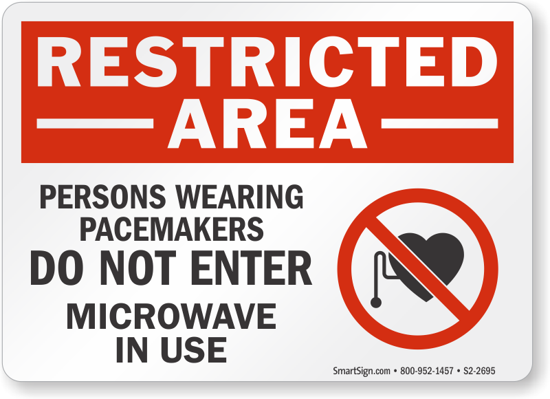 Restricted Area Sign: Persons Wearing Pacemakers, Do Not Enter, Microwave In Use