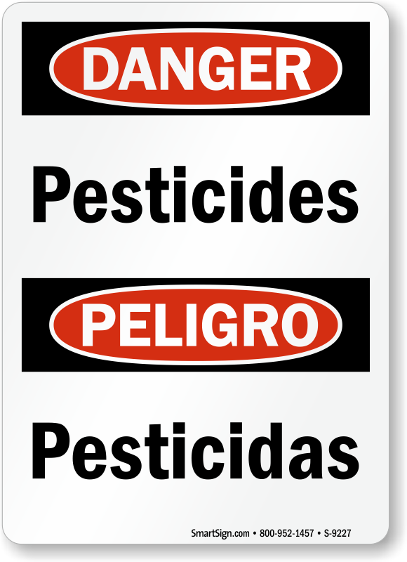 Post this bilingual OSHA danger sign to mark pesticide storage area. Sign helps keep people away from potentially hazardous location.