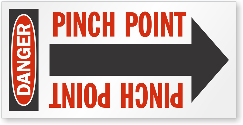 Mark pinch points with these arrow labels to indicate hazards and prevent accidents.