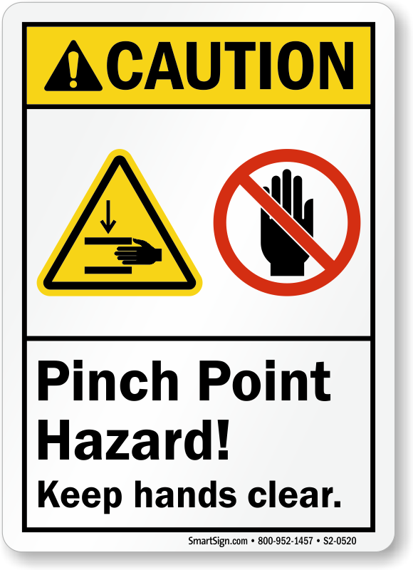 ANSI Caution Sign: Pinch Point Hazard, Keep Hands Clear (With 2 Symbols)