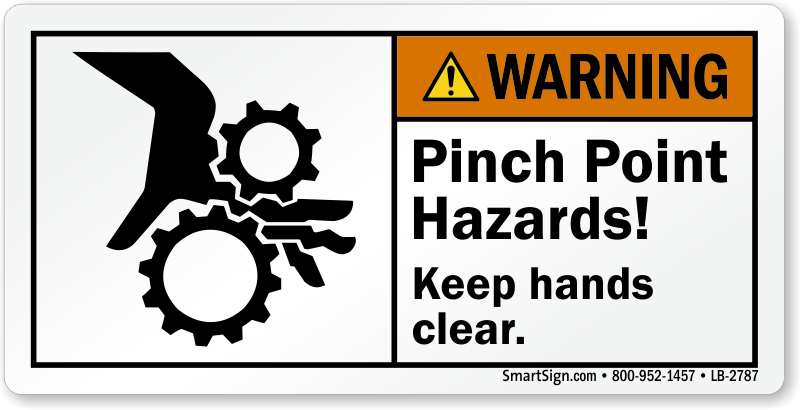 ANSI Warning Safety Label: Pinch Point Hazards! Keep Hands Clear (With Hand Entanglement Graphic) LB-2787