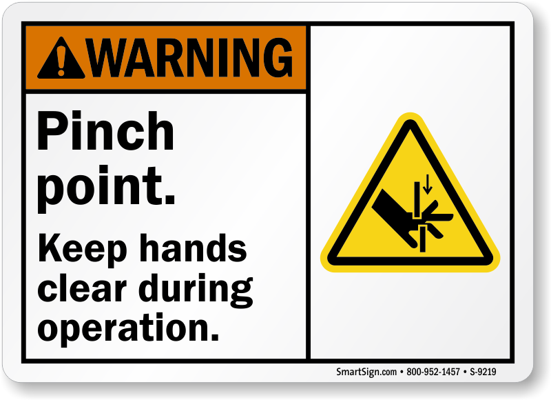 ANSI Warning Sign: Pinch Point Keep Hands Clear During Operation S-9219 Learn More...
