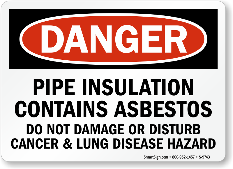 Notify everyone against damaging or disturbing pipe insulation containing Asbestos. Use this OSHA Danger Asbestos Sign so that everyone around practices safety.