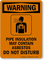 Promote safety in the workplace by installing this OSHA sign which warns of asbestos presence in pipe insulation, and stay away from any liability.