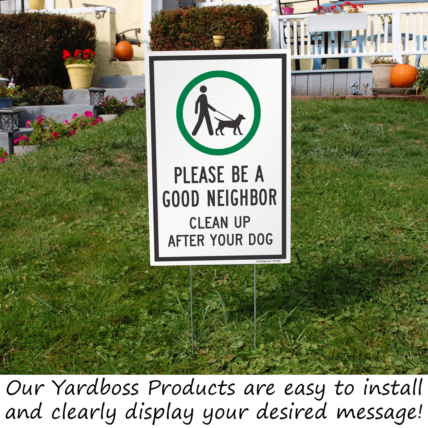 Gently remind your neighbors that it is good manners to clean up after their pet! Simply slide the H-stake into the corrugated sign and step into the lawn for quick and easy installation!