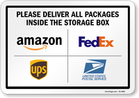 Package Delivery Sign: Please Deliver All Packages Inside The Storage Box (with Amazon, FedEx, UPS & USPS Graphics) S2-5000