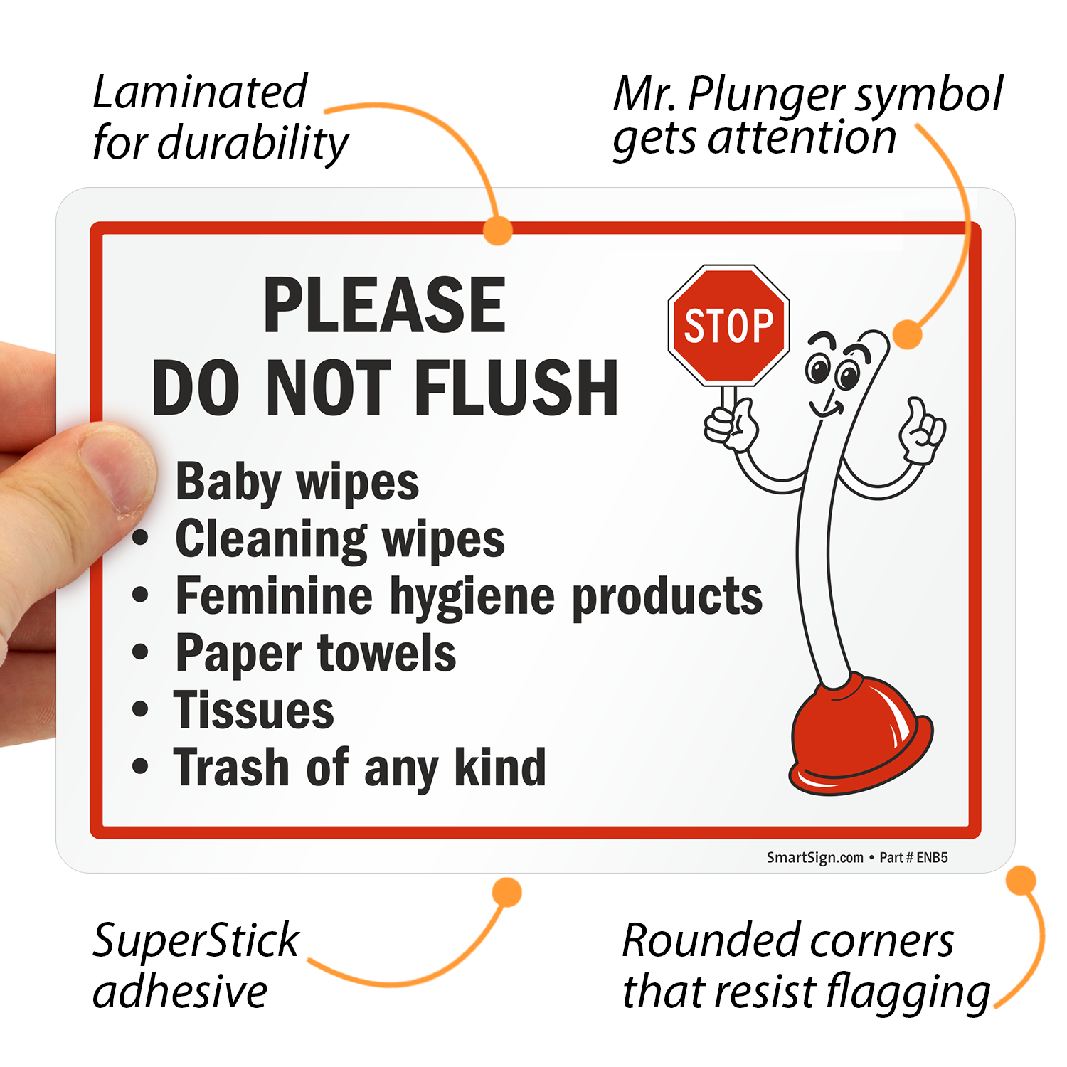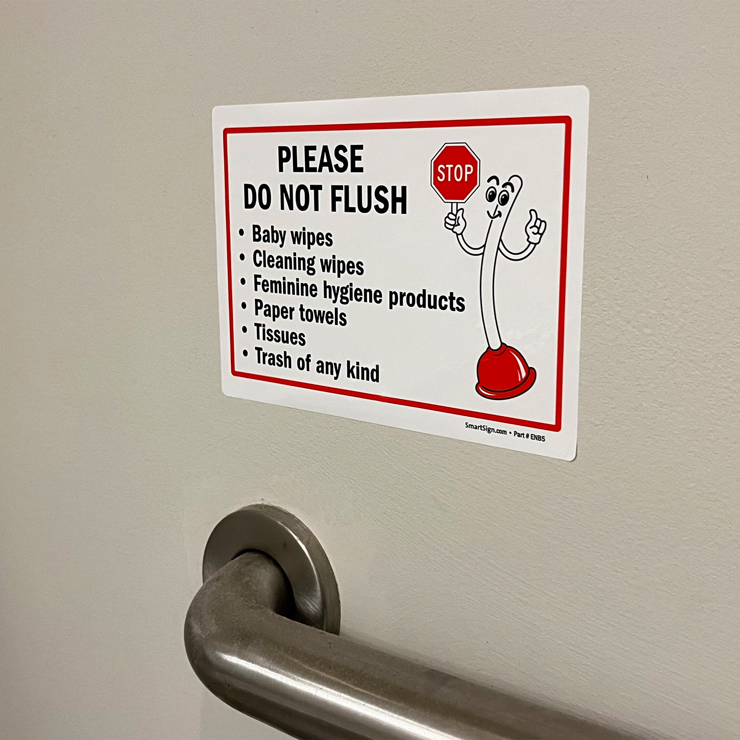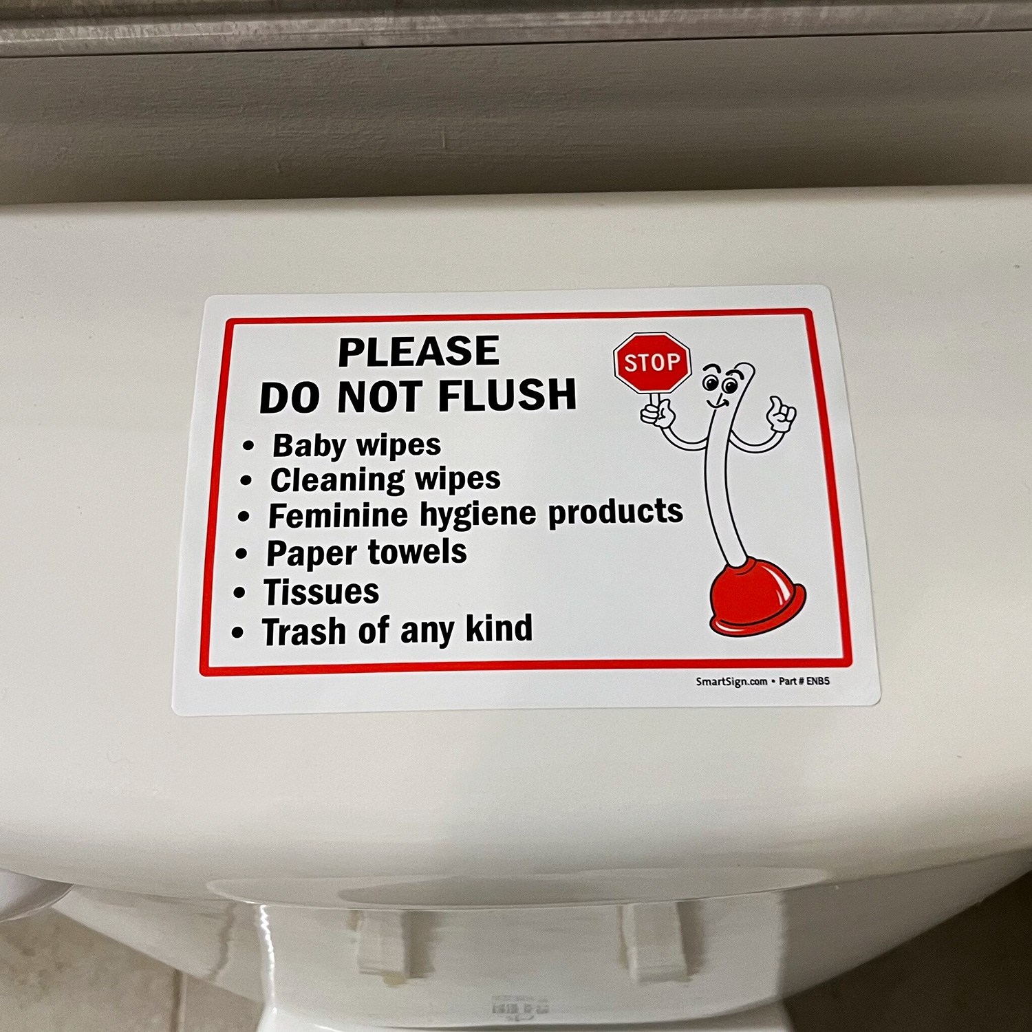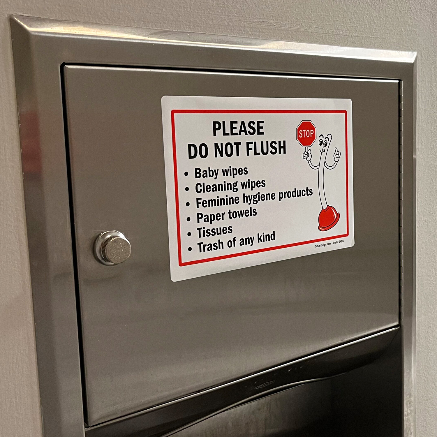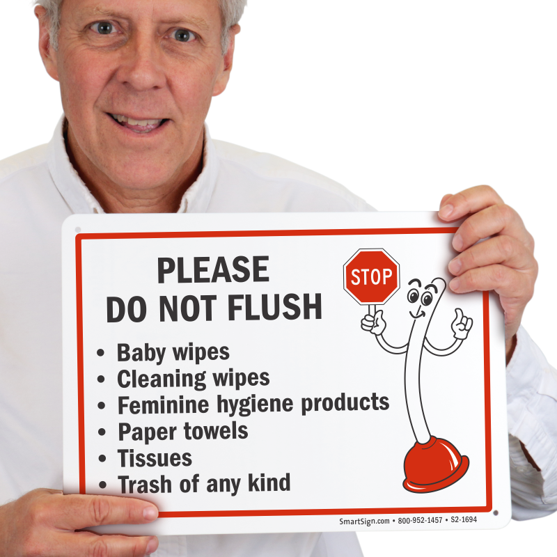 Plunger Mascot Restroom Sign: Please Do Not Flush Baby Wipes S2-1694