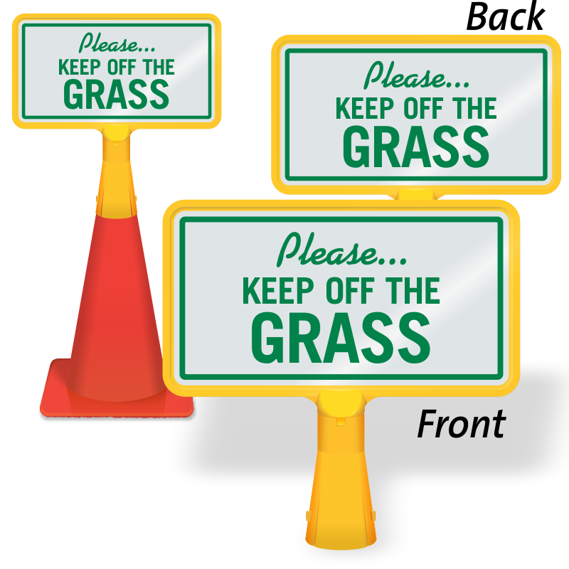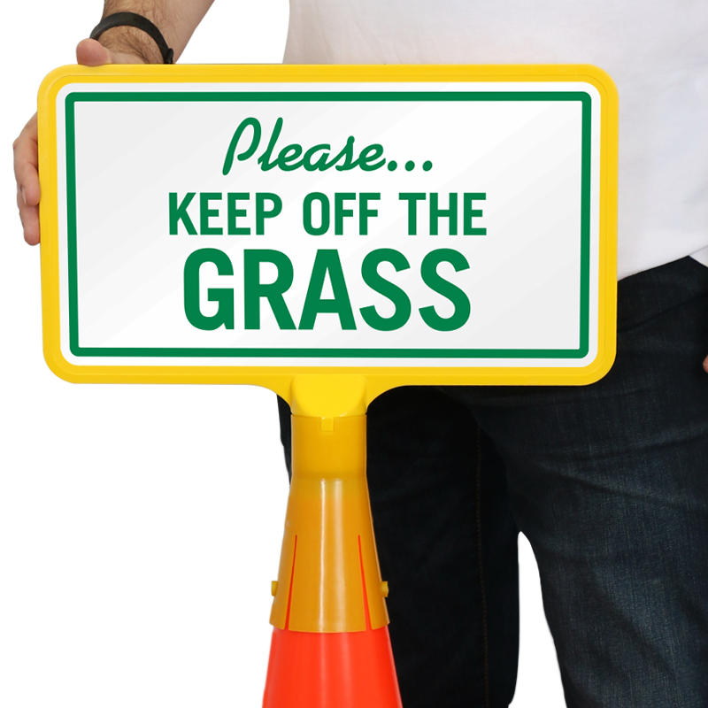 Need a portable sign to keep vehicles and people away from your grass? Place this highly-visible no-tip Traffic Cone Sign on or around lawns.