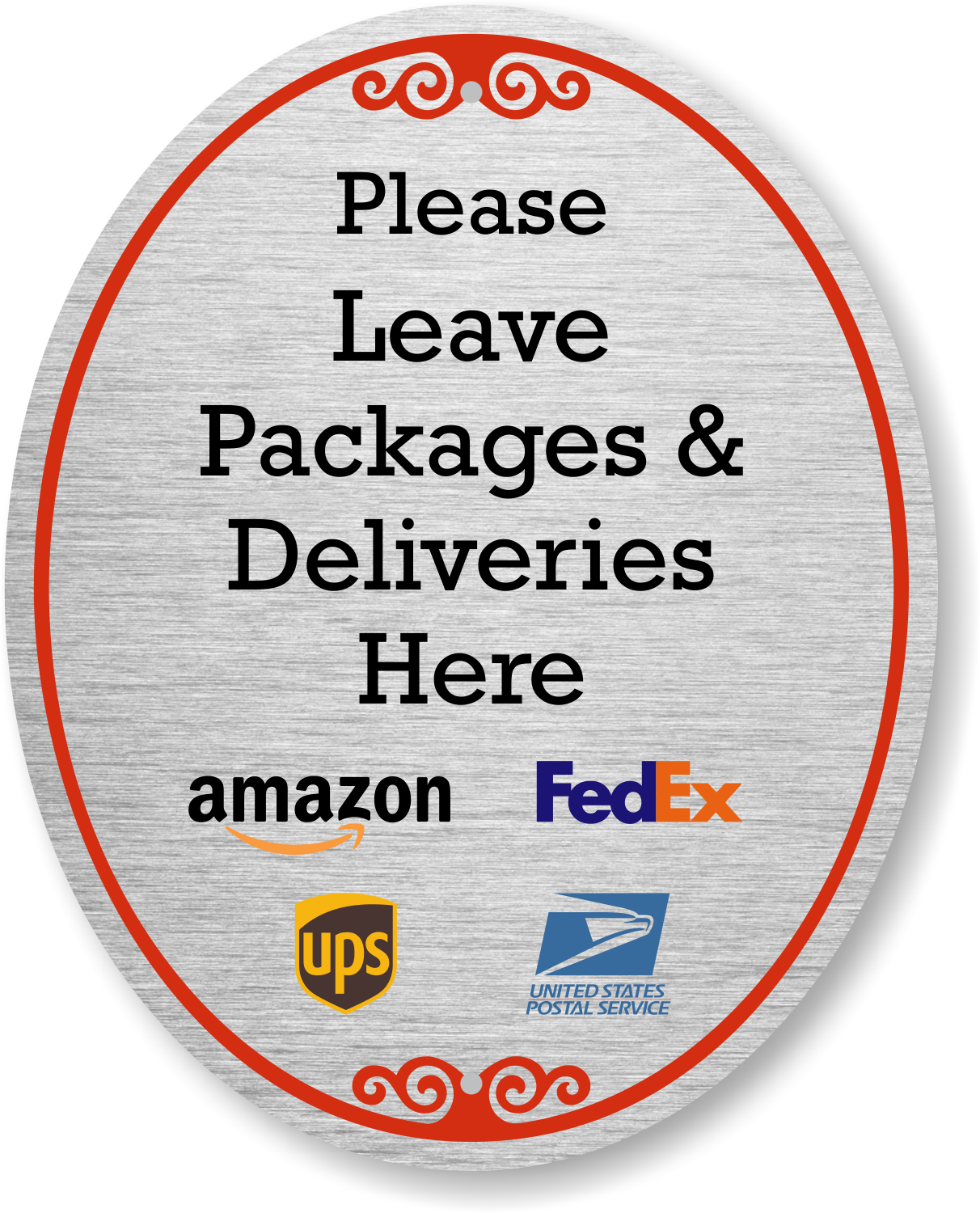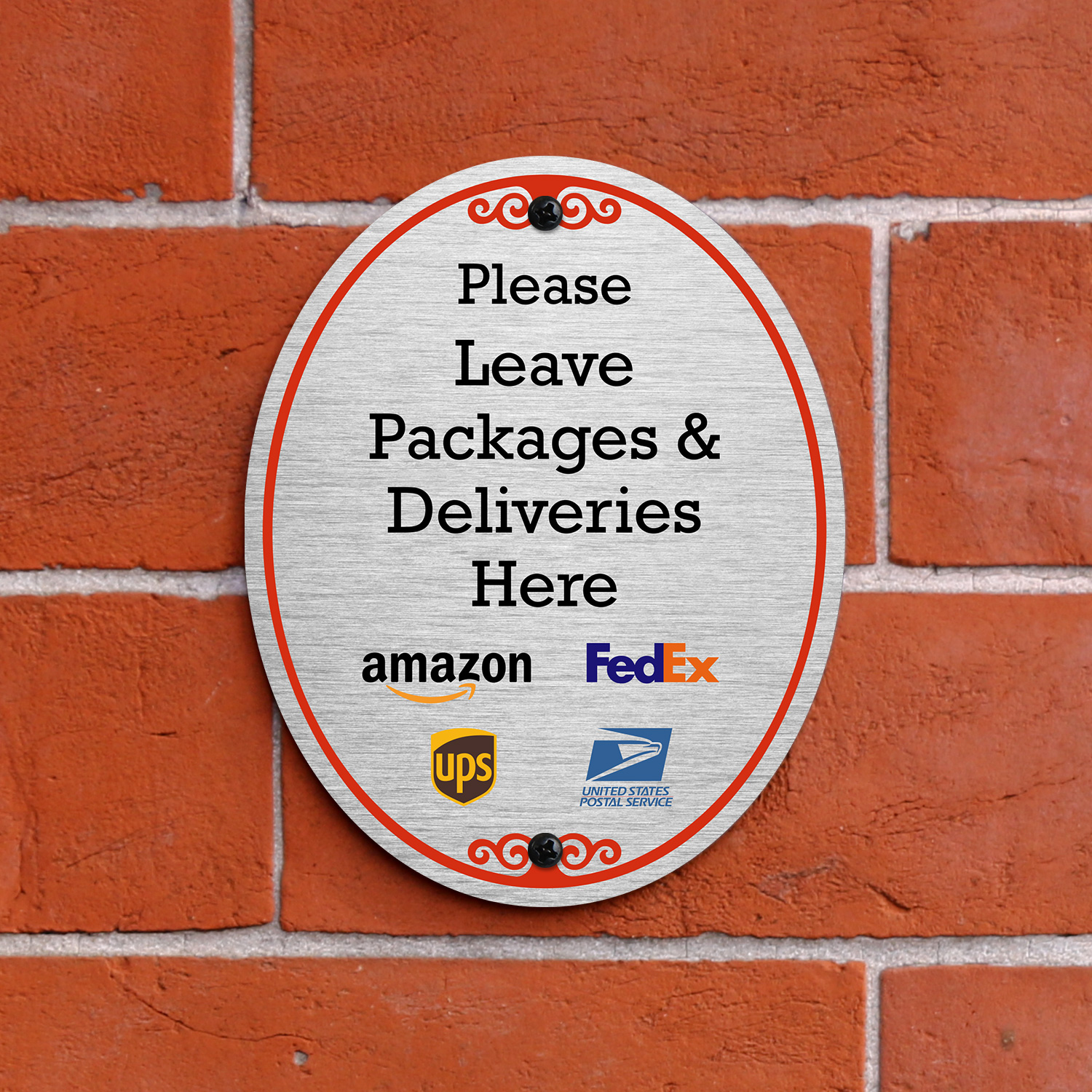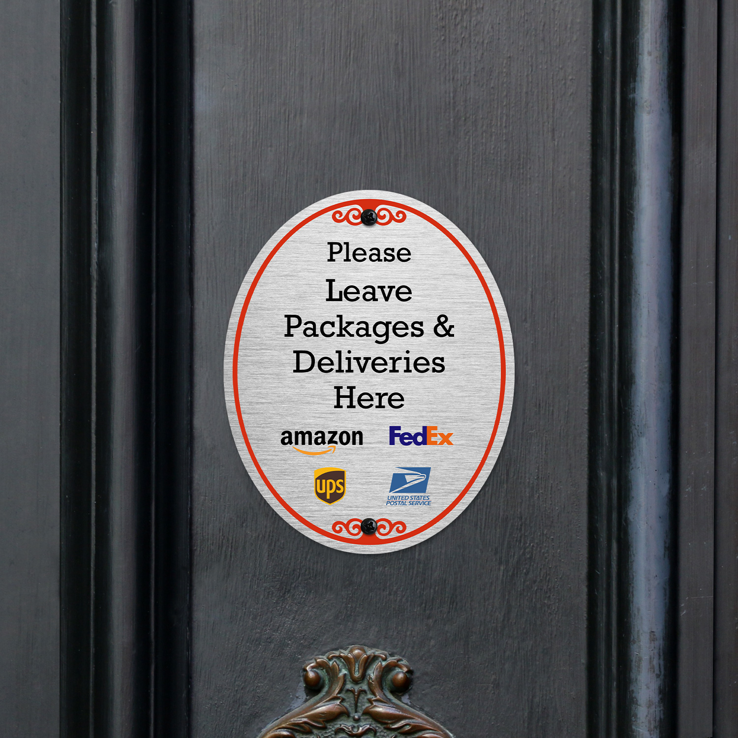 DiamondPlateâ„¢ Door Sign: Please Leave Packages & Deliveries Here (with Amazon, FedEx, UPS & USPS Graphics) DP-0150