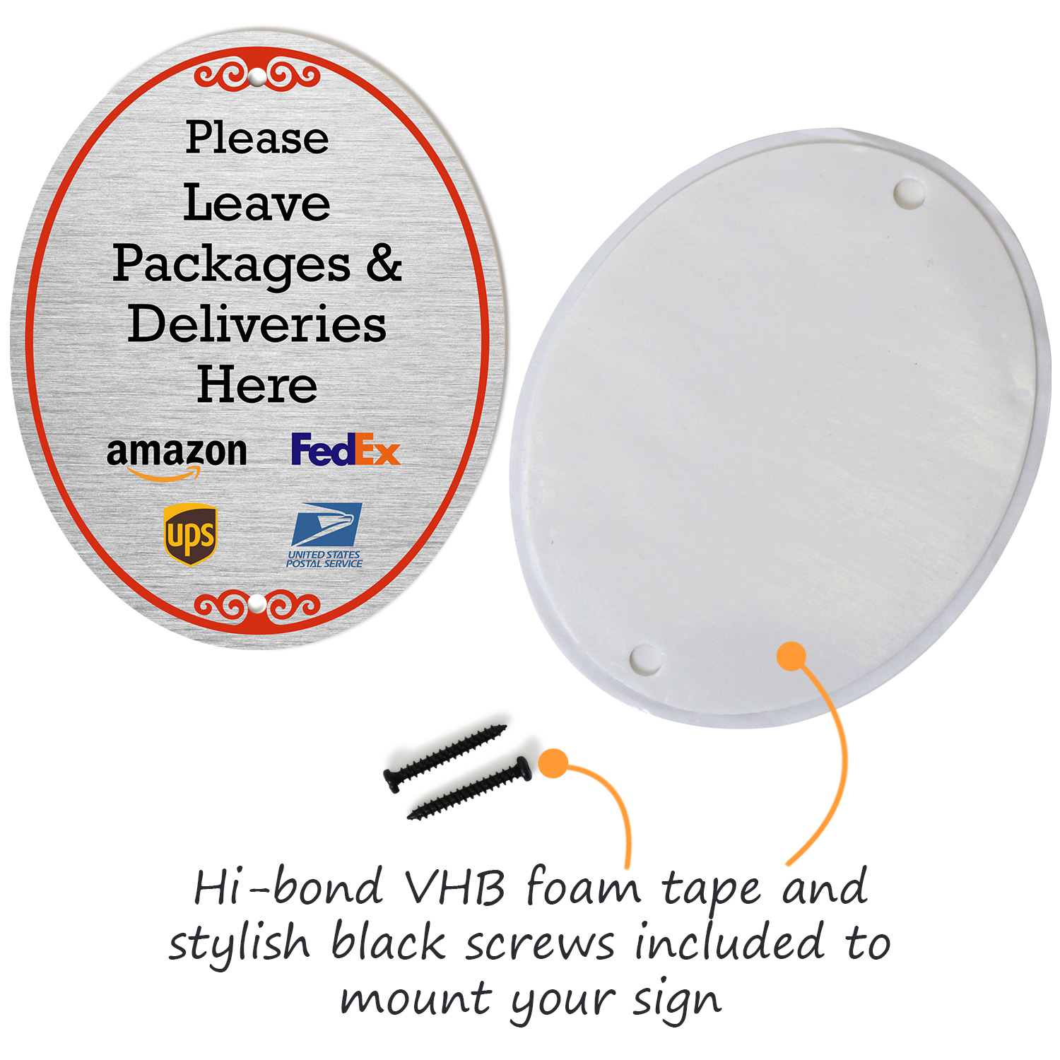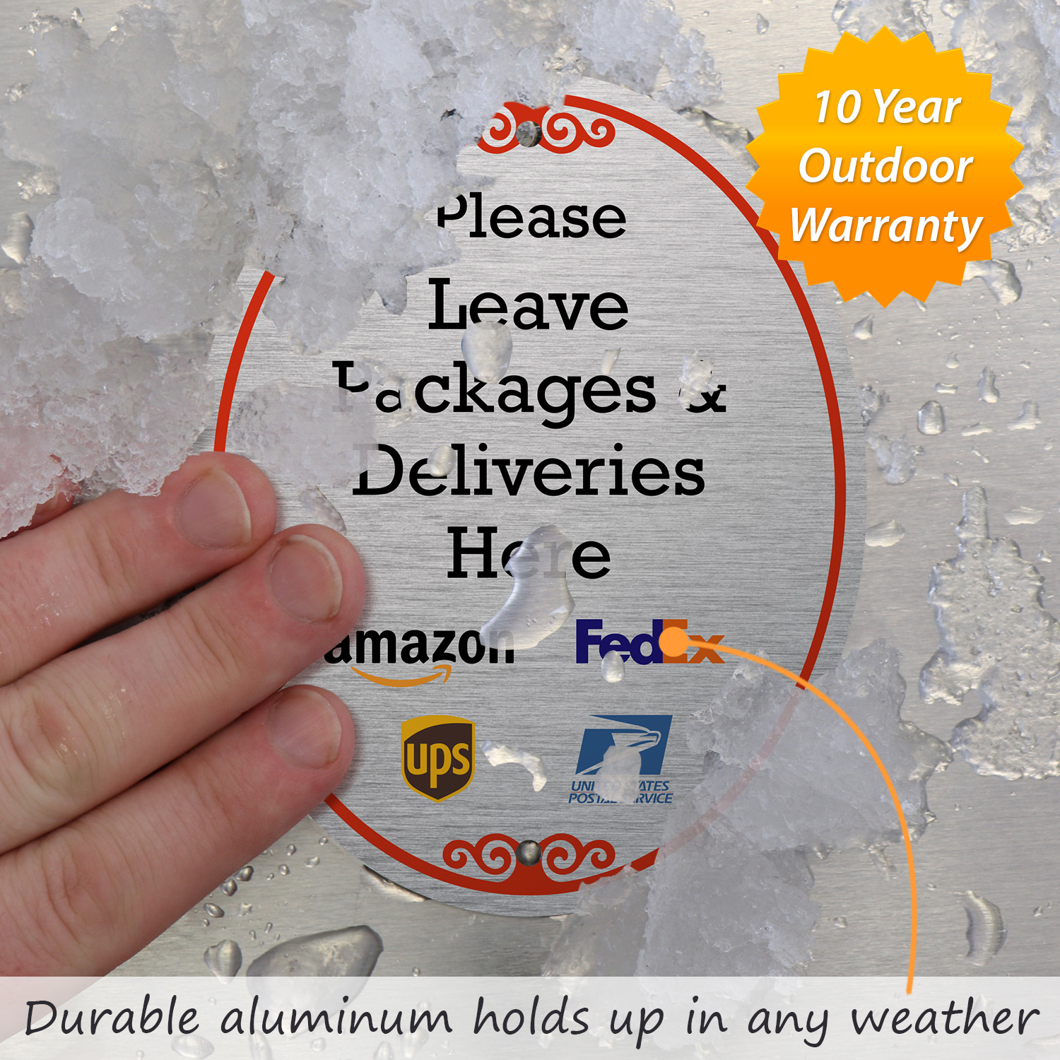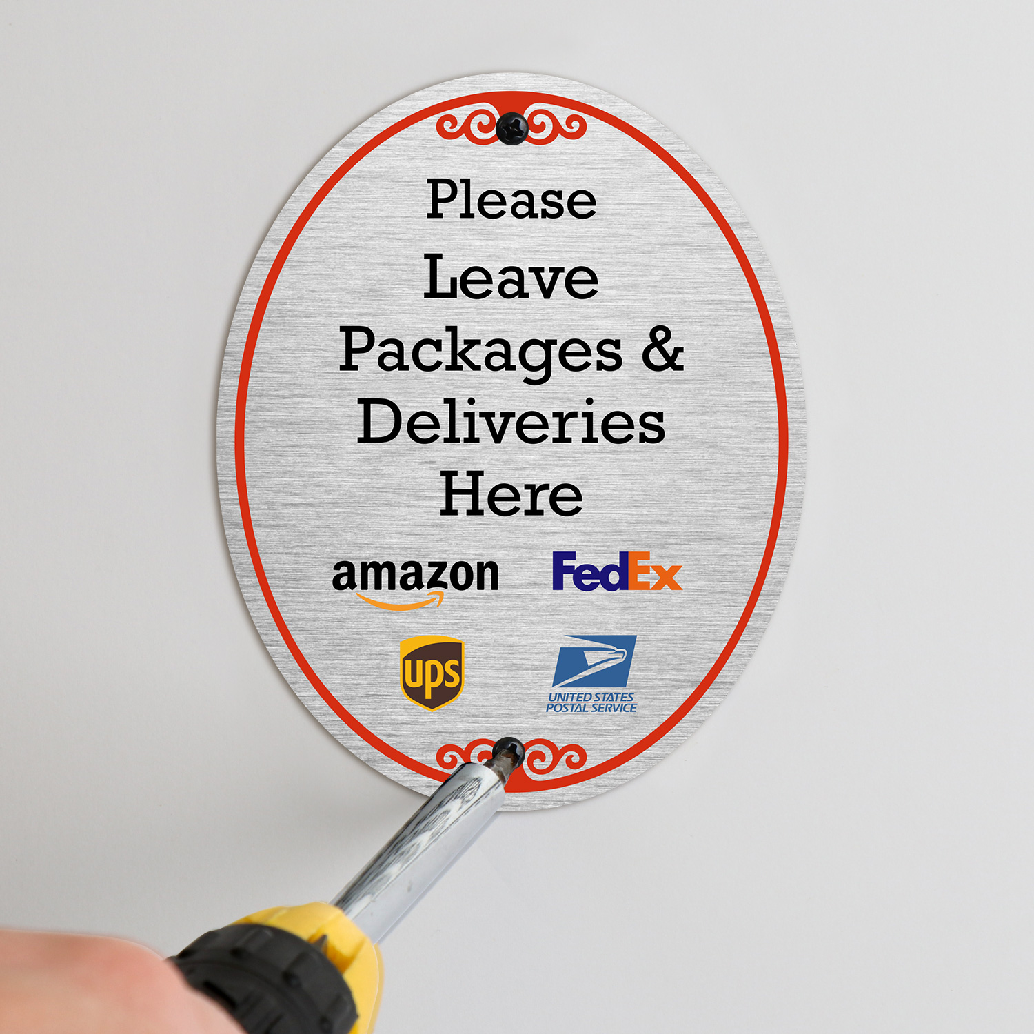 DiamondPlateâ„¢ Door Sign: Please Leave Packages & Deliveries Here (with Amazon, FedEx, UPS & USPS Graphics) DP-0150