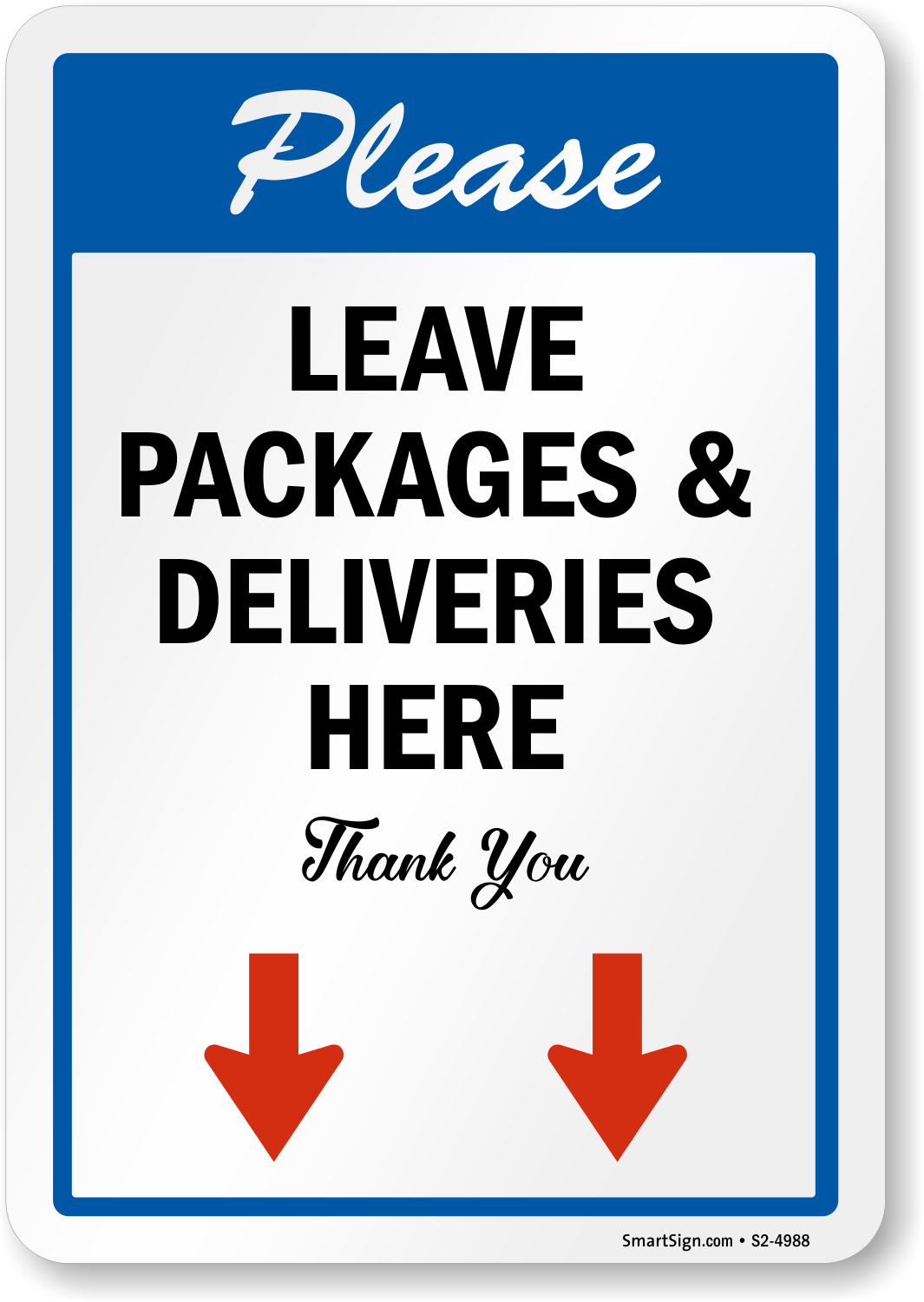 Package Delivery Sign: Please Leave Packages & Deliveries Here, Thank You (with Downward Arrow) S2-4988