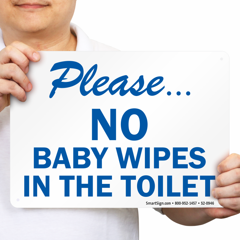 No matter how hurried moms are, this bathroom hygiene sign will remind them not to flush baby wipes in the toilet.