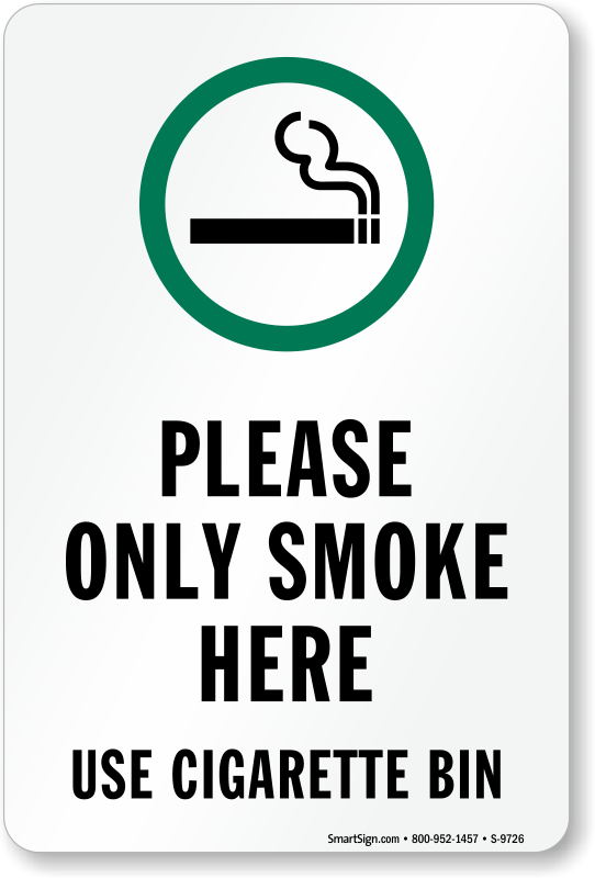 Smoking Area Sign: Please Only Smoke Here, Use Cigarette Bin (With Cigarette Symbol) S-9726