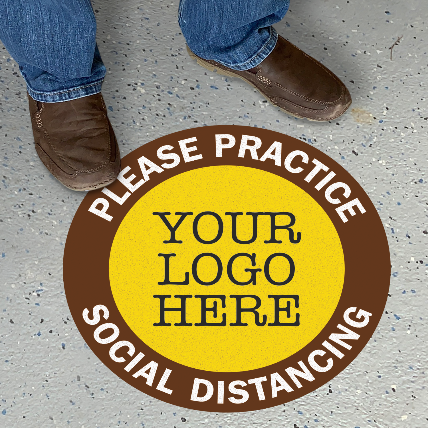 SlipSafe⢠Custom Floor Sign: Please Practice Social Distancing, Add Your Logo Here