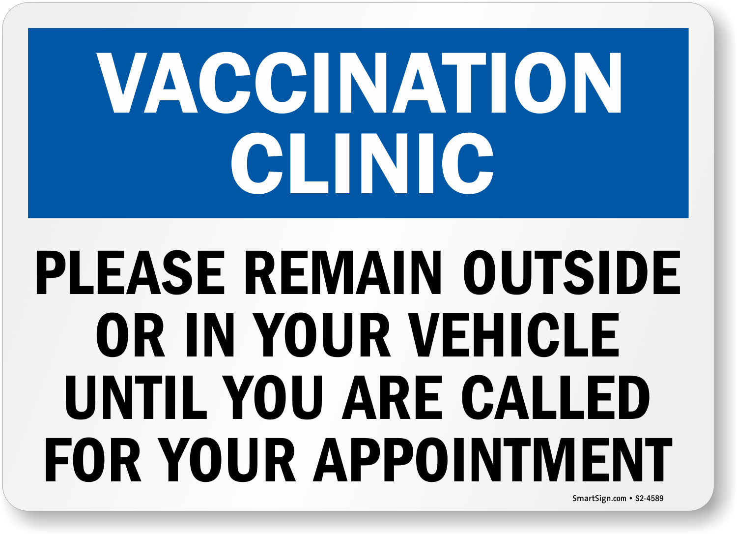 Vaccination Clinic Signs: Vaccination Clinic Please Remain In Your Vehicle Until Called For Your Appointment S2-4589