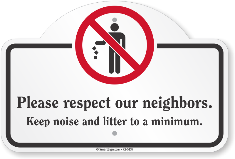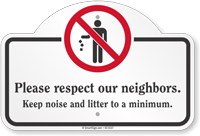 Dome-Top Sign: Please Respect Our Neighbors. Keep Noise And Litter To A Minimum. K2-5137 Learn More...