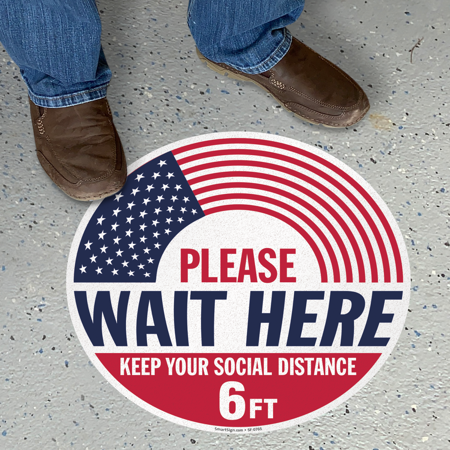 Clearly mark the waiting spots and implement social distancing with our high-visibility adhesive floor signs.