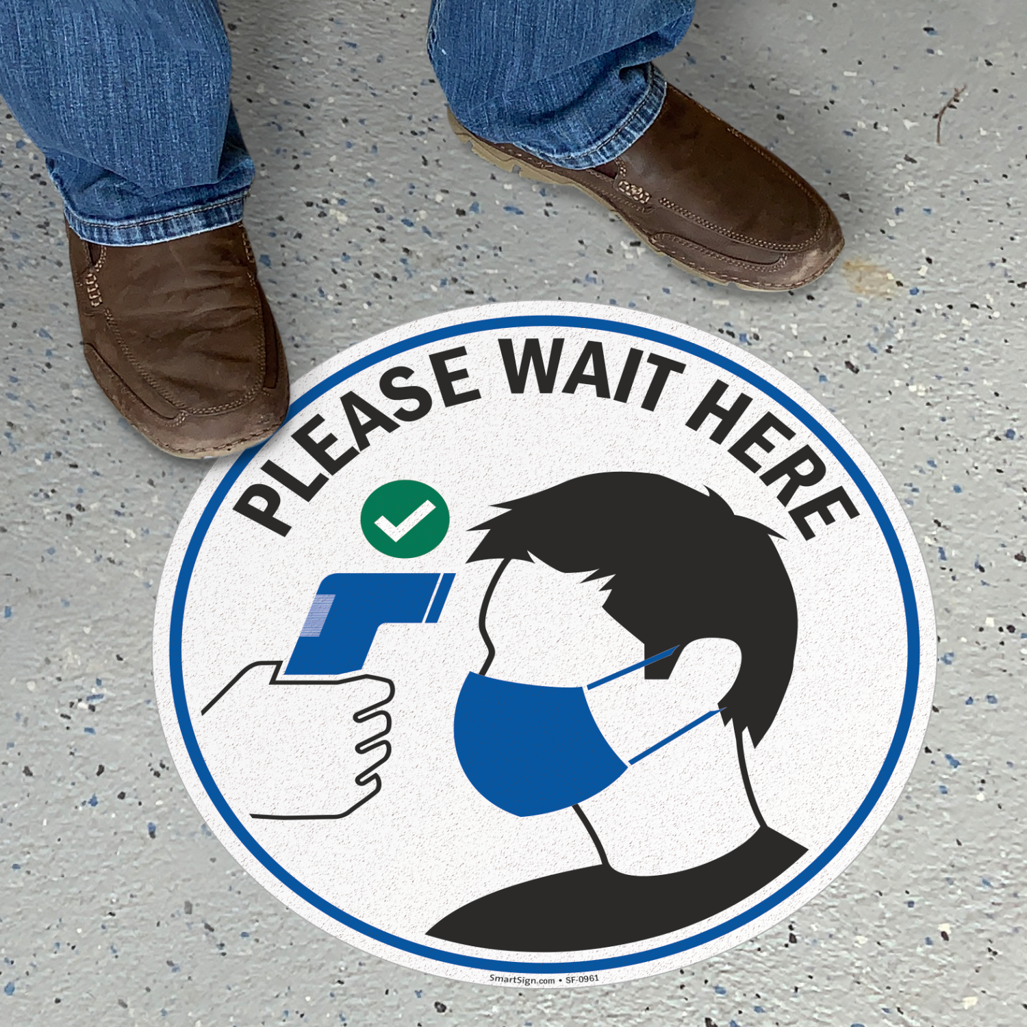 Use our high-visibility floor sign to mark the exact spots where people must wait for a temperature check.