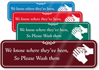 ShowCaseâ„¢ Funny Bathroom Sign: We Know Where They've Been, So Please Wash Them SE-6943