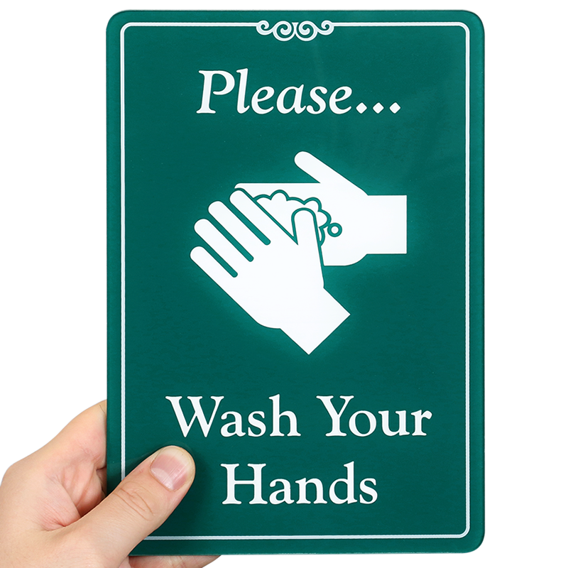 This designer Restroom ShowCase Wall sign with graphic effectively reminds people to wash their hands and instills hygiene in your facility. Select from a range of designer colors to complement your décor.