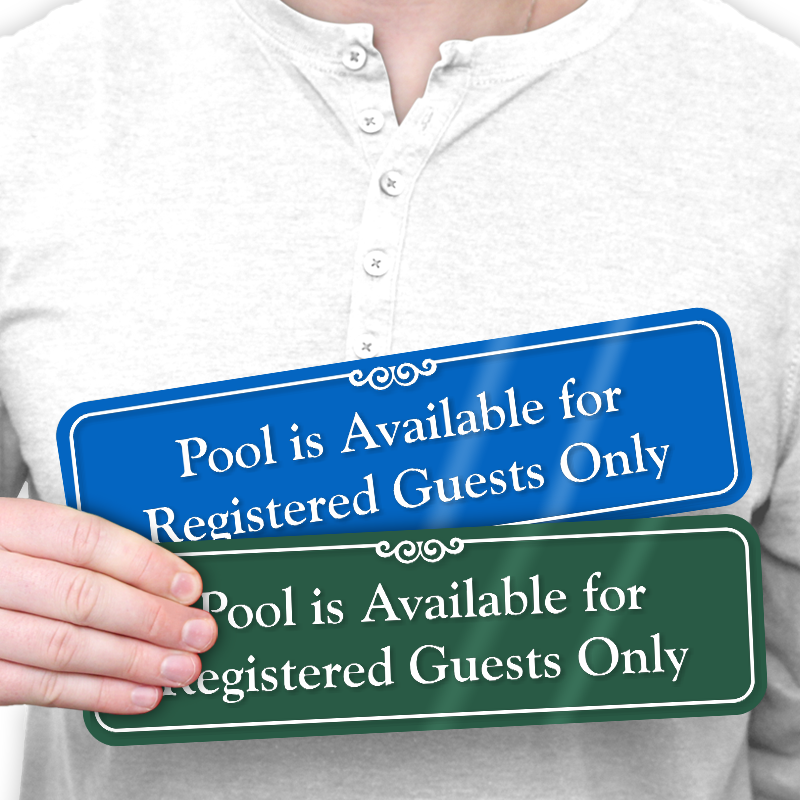 If the swimming pool is available for registered guests only, clearly communicate the message to everyone by installing this Pool Rules ShowCase Wall sign near the pool zone. This professionally designed product comes with an elegant border and a choice of background colors.