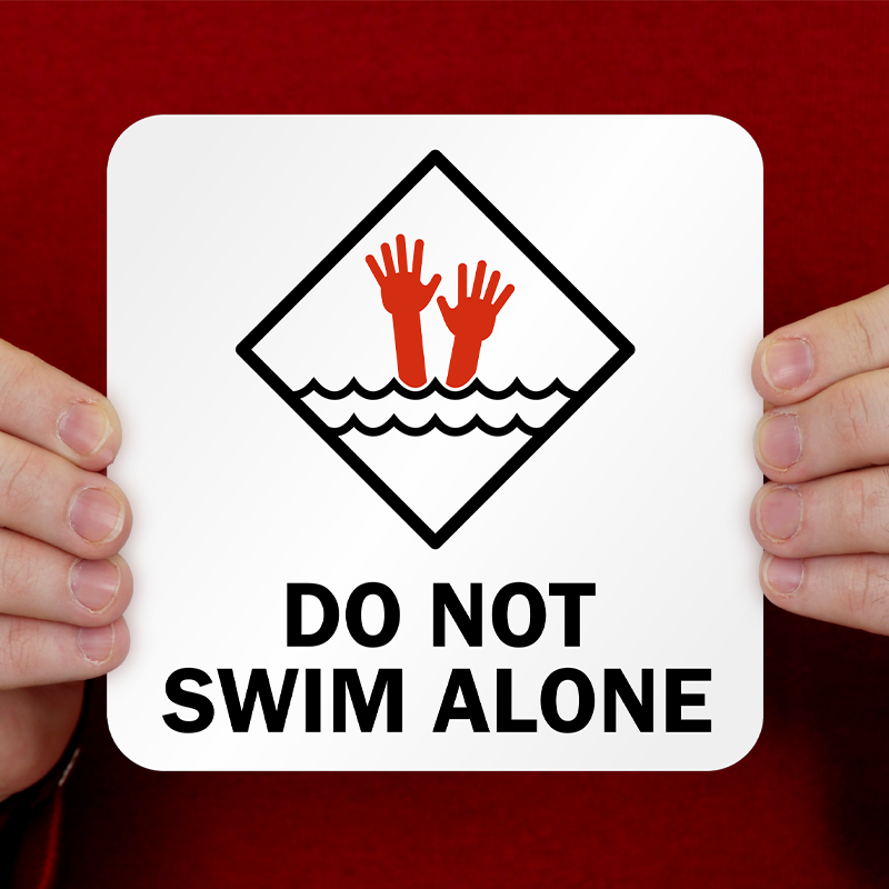 Pool Marker: Do Not Swim Alone With Person Drowning Symbol MK-0247