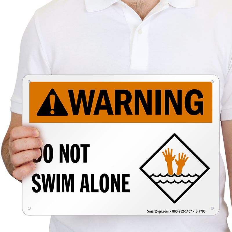 Warn the community about the dangers of swimming alone with a Do Not Swim Alone Swimming Pool Sign that includes a graphic image.