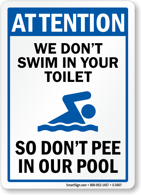 Funny Pool Sign: We Don't Swim In Your Toilet, Please Don't Pee in our Pool. S-5607 Learn More...