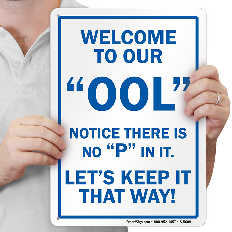 Funny Pool Sign: Welcome to our OOL (Notice There's no 'P' in it…) Let's Keep it that way! S-5608 Learn More...