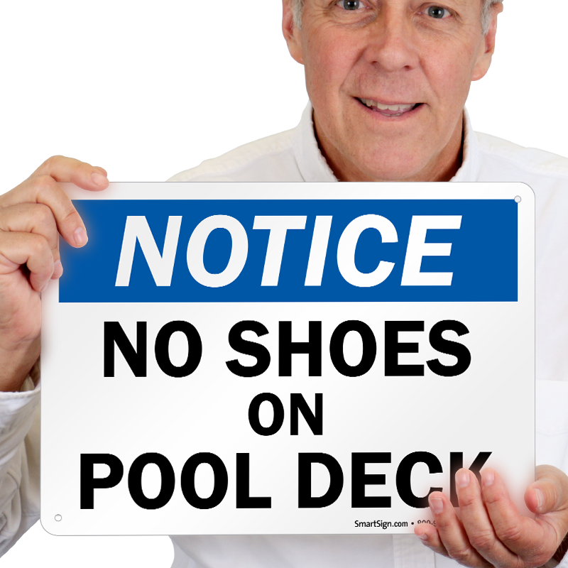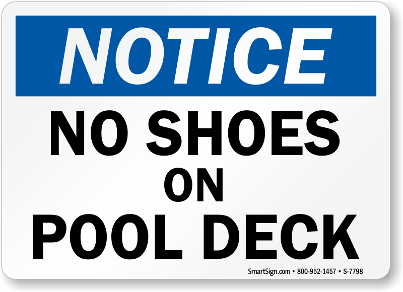 Avoid accidents and injuries in your facility by helping your guests keep their shoes where they belong with a No Shoes On Pool Deck Sign.