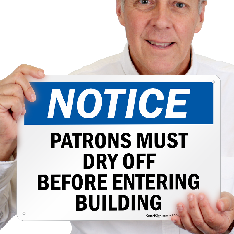 Prevent the building from turning into a pool too with a Patrons Must Dry Off Before Entering Building Pool Sign.
