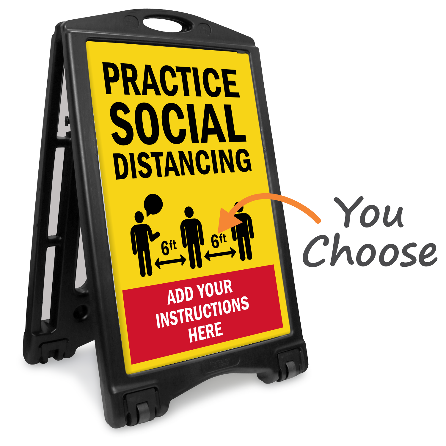 Two-sided BigBoss sign serves as a hard-to-miss reminder of practicing social distancing. Custom instructions can be added to the sign within minutes.