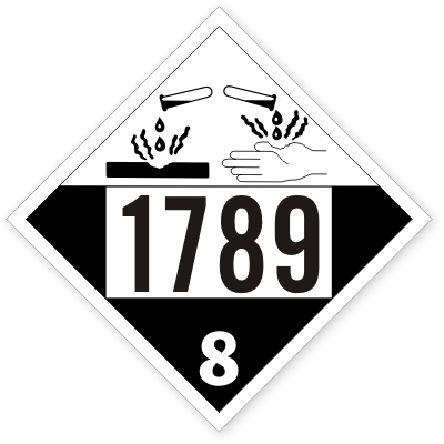 Tagboard Placards: UN1789 Class 8 Hydrochloric Acid Placard (with Graphic) DOT-2023 Learn More...