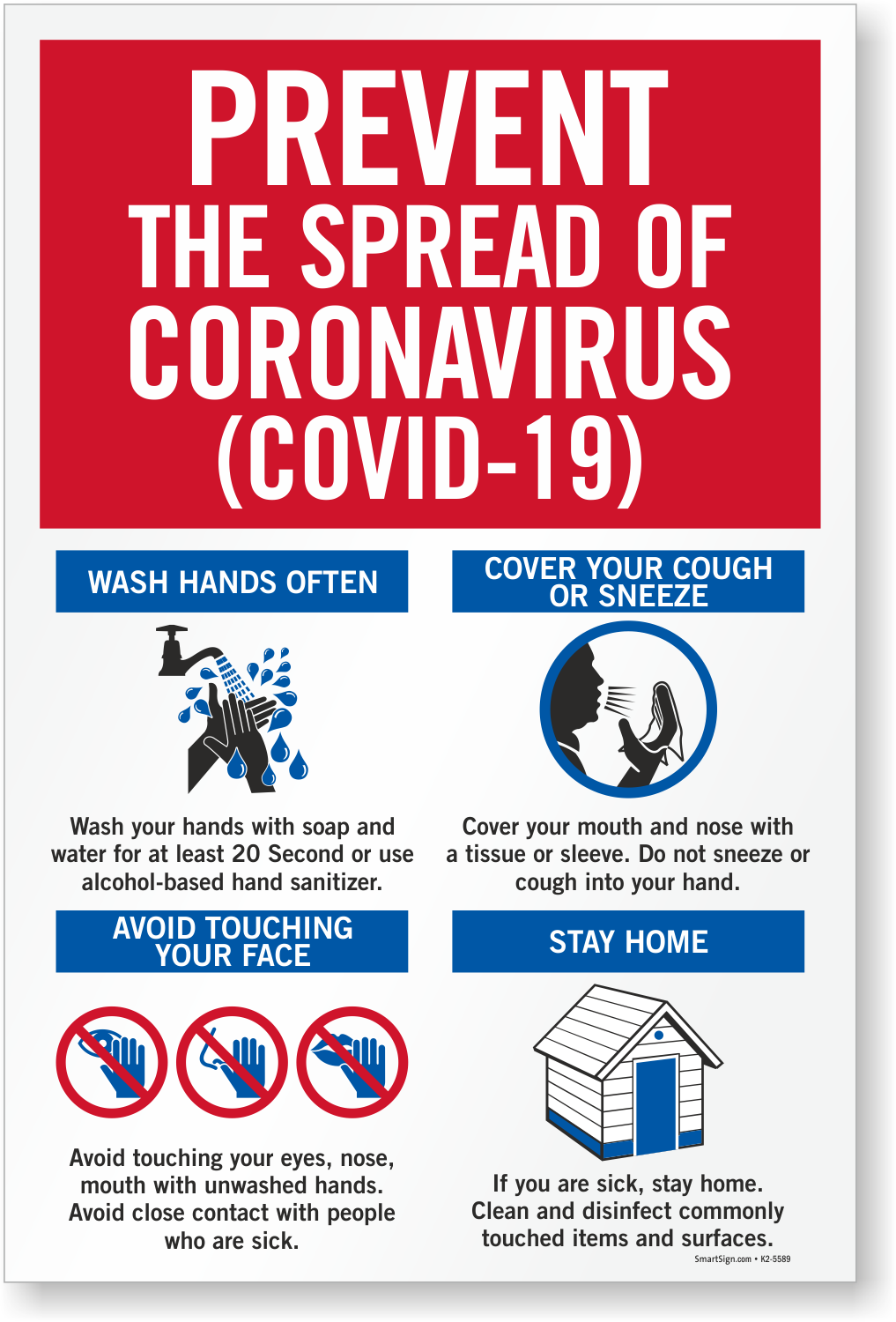Guide people about coronavirus prevention with our carefully designed sign that includes symbols to aid understanding.