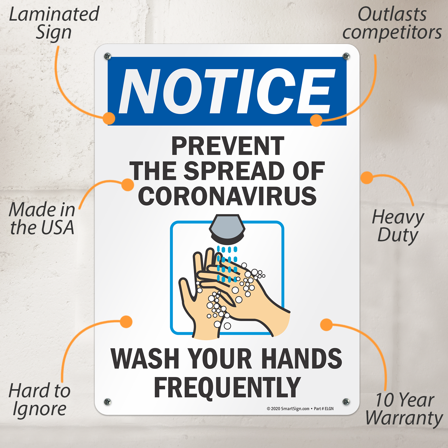 OSHA Notice Sign: Prevent The Spread. Wash Your Hands Frequently S2-4354