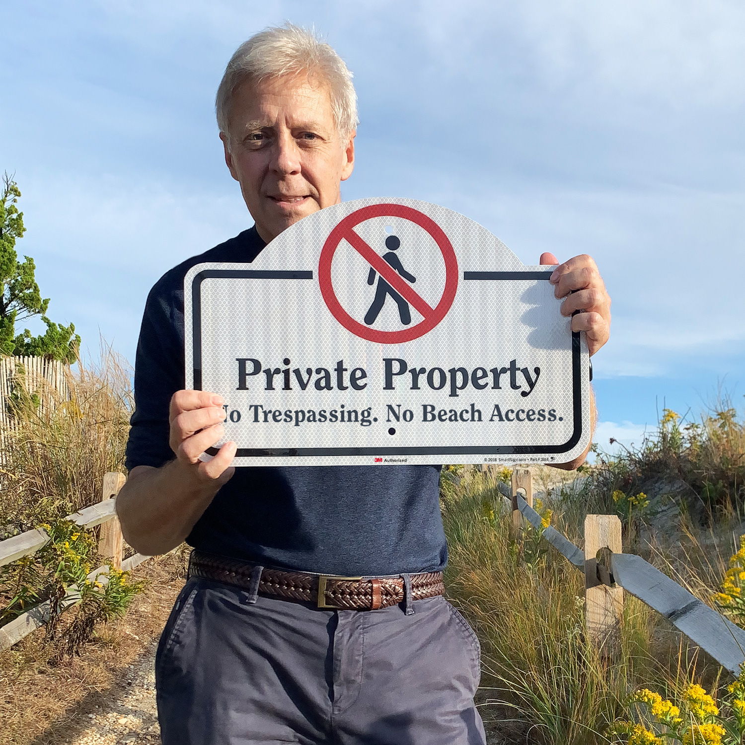 Dome-Top Sign: Private Property - No Trespassing. No Beach Access K2-5149 Learn More...