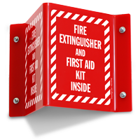 - This projecting sign can be installed outside firefighting equipment and first aid storage area.