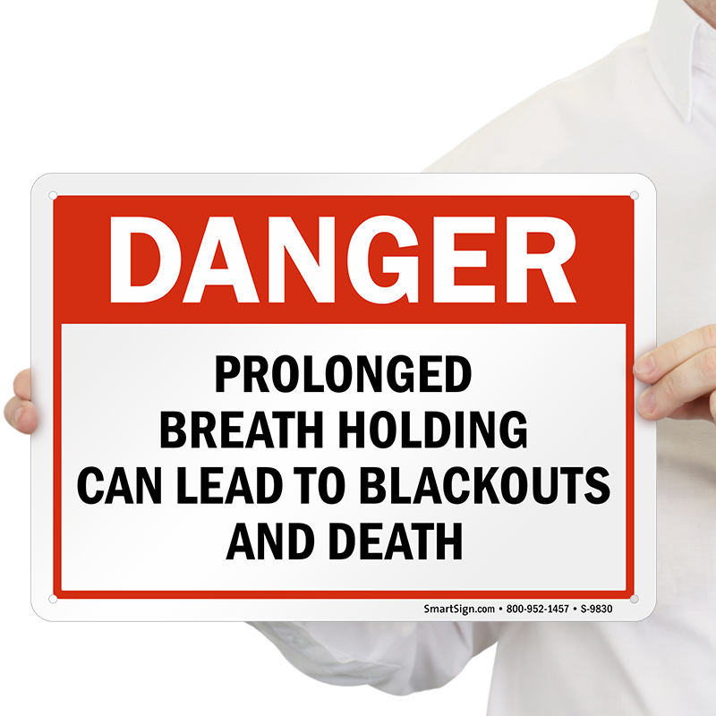 Kids at a pool can challenge each other to see who can hold their breath longer in shallow water. Install this 'Prolonged Breath Holding Can Lead To Blackouts and Death' sign near your pool and save swimmers from a preventable accident.