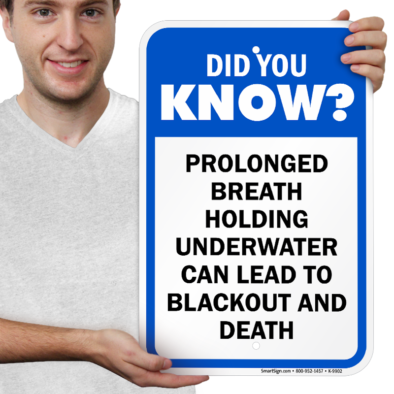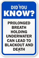 Pool Safety Sign: Did You Know? - Prolonged Breath Holding Underwater Can Lead to Blackout and Death K-9902 Learn More...