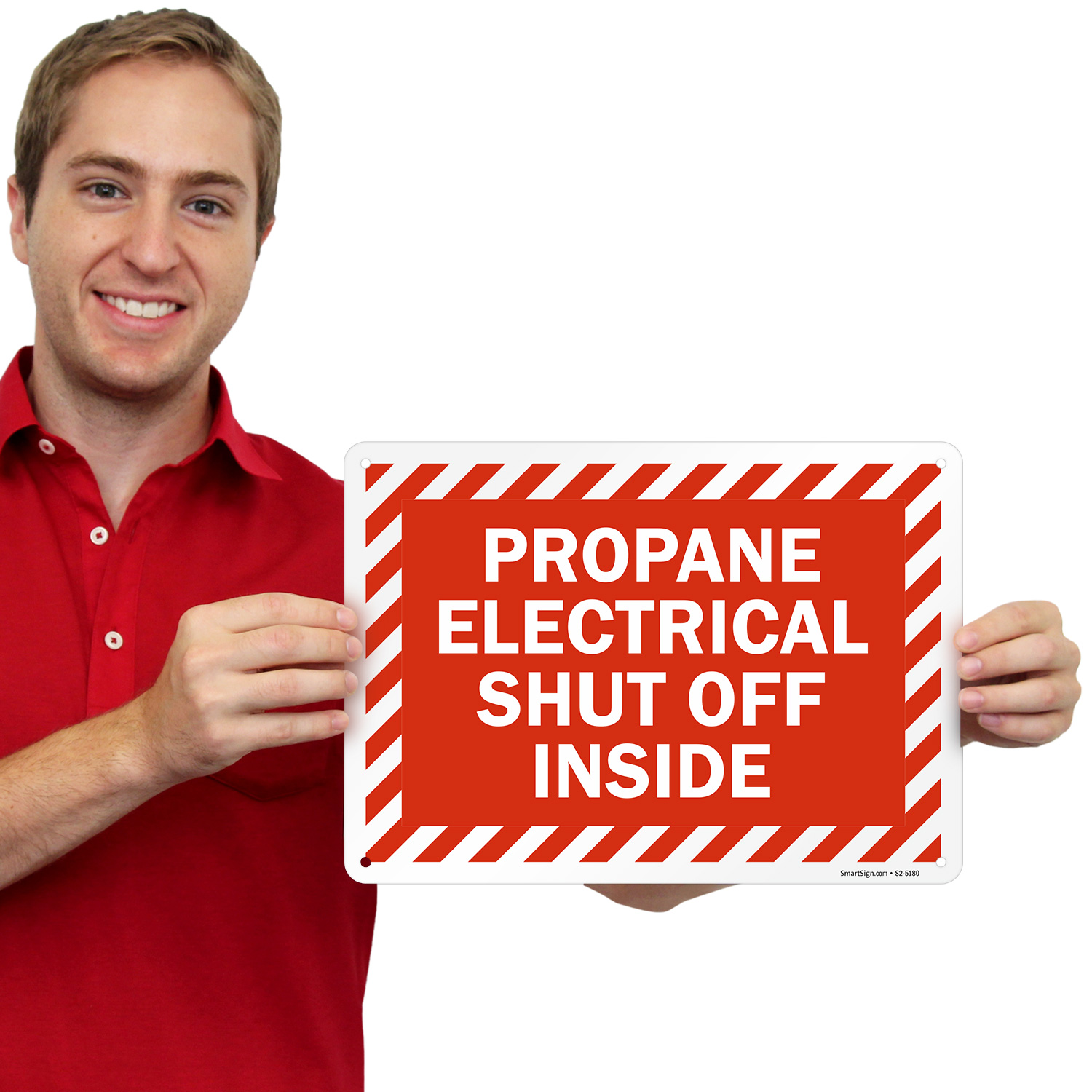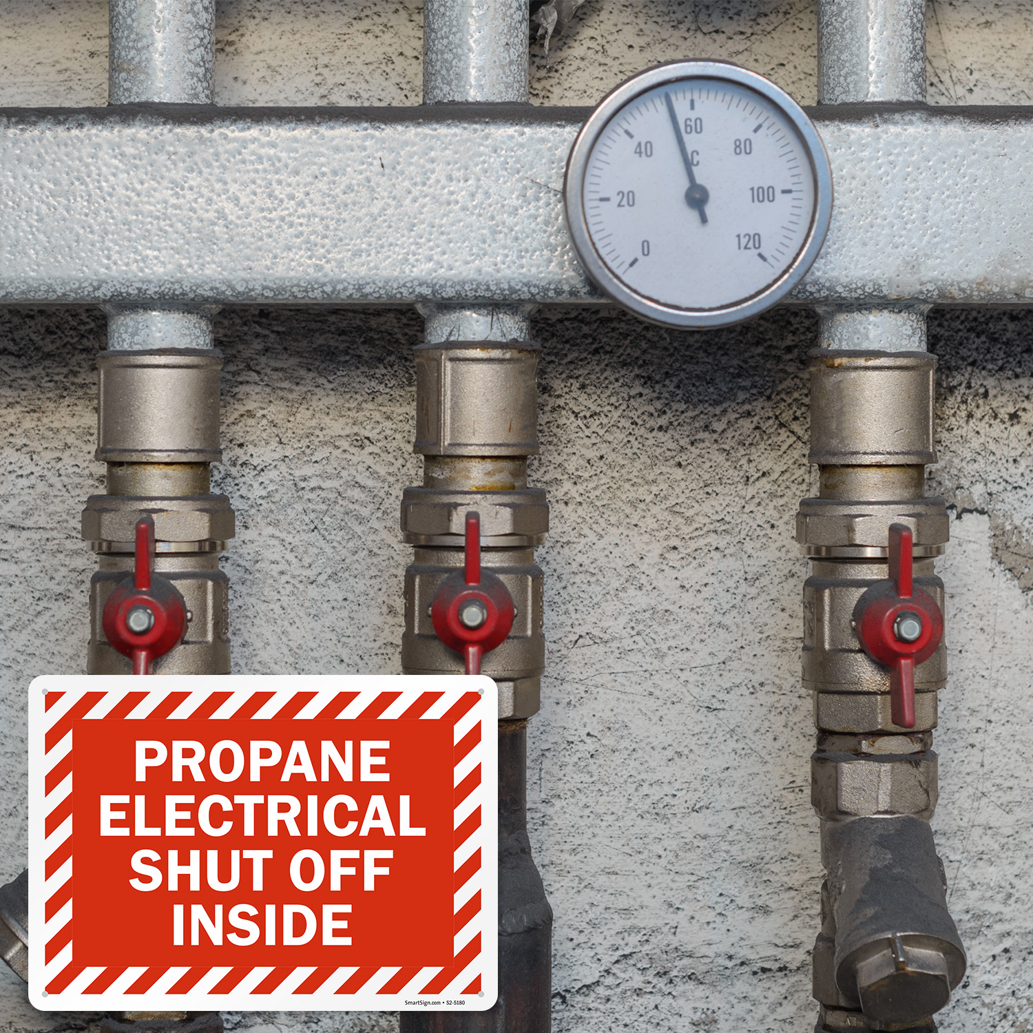 Emergency Shut-Off sign minimizes damage, reduces risks, and prevents accidents by allowing quick identification and location of shut-off controls in emergency situations.