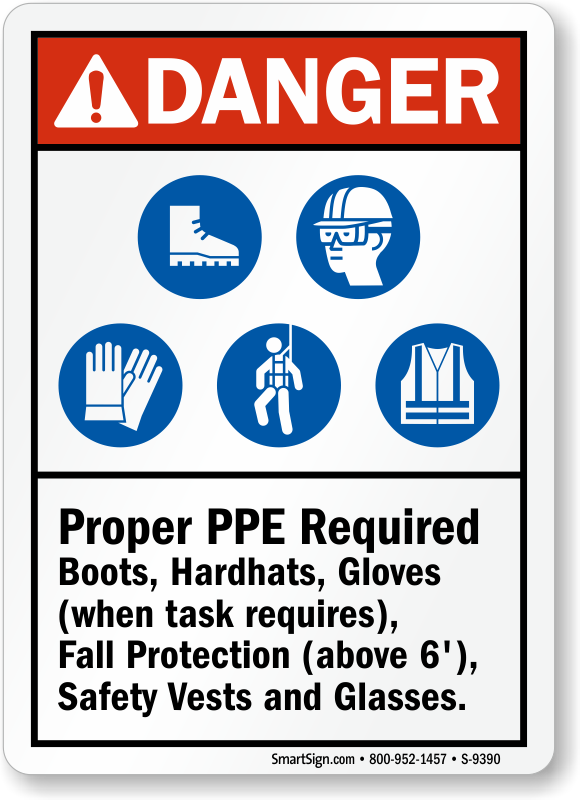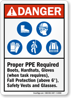 - ANSI Danger PPE Sign features clear pictograms representing different protective wears.