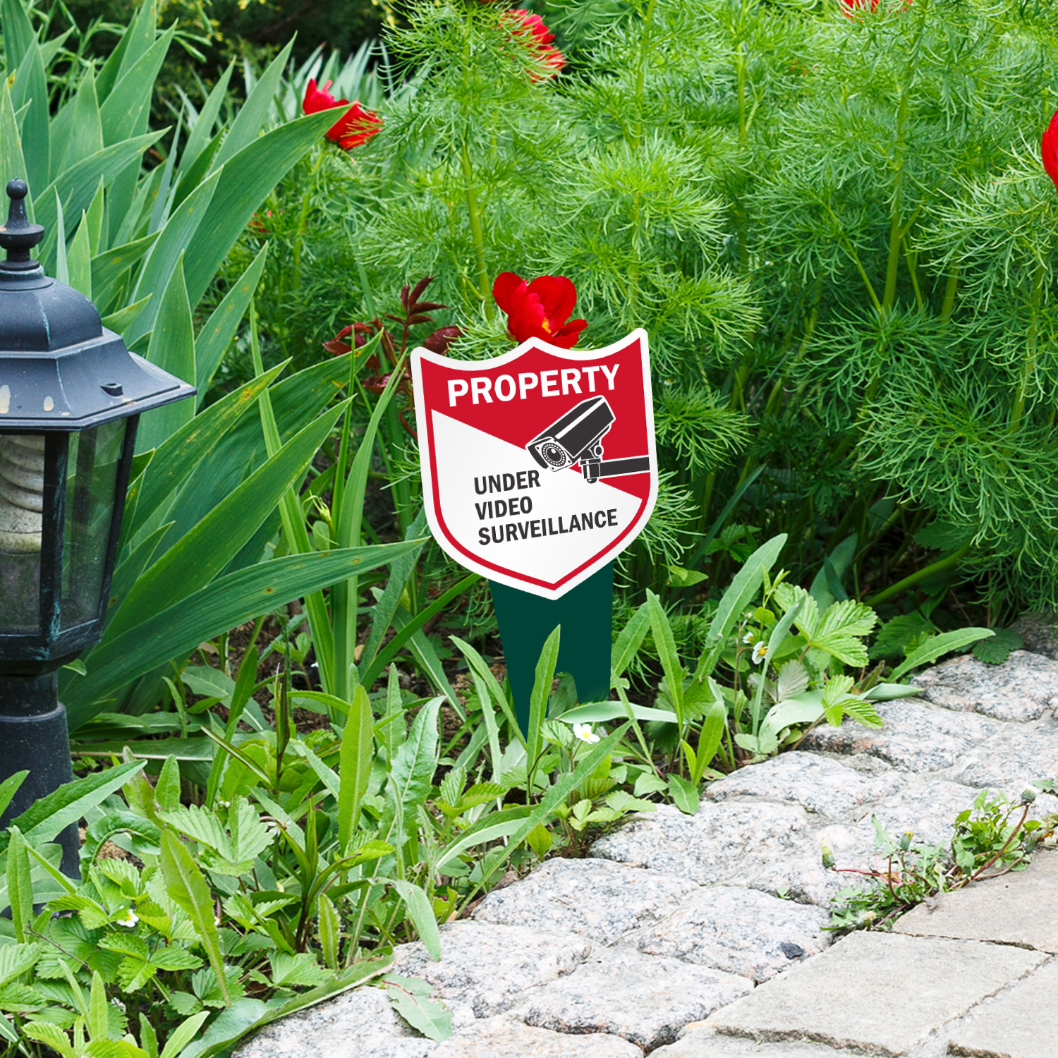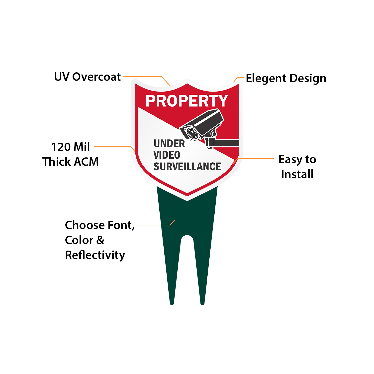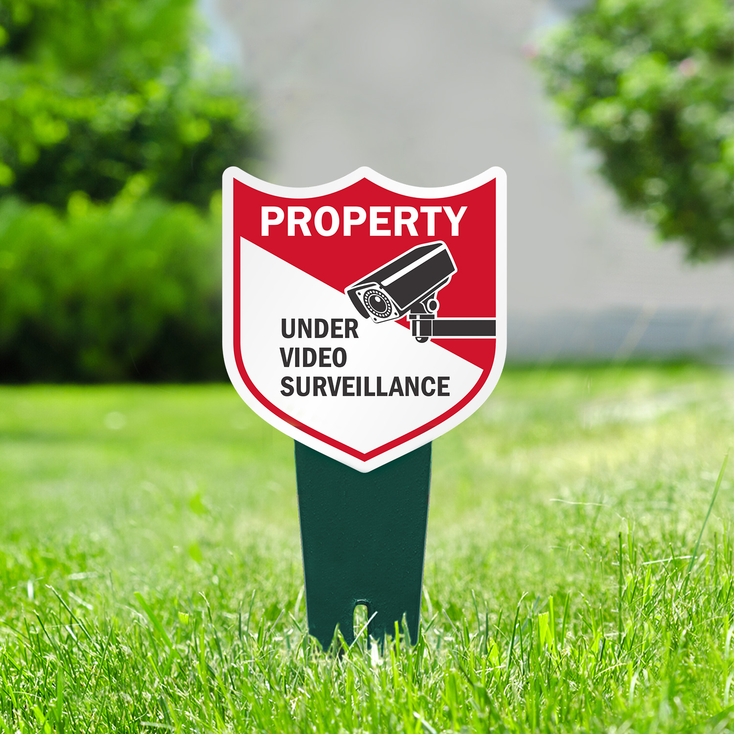 Shield Shape Yard Stake Sign: Property Under Video Surveillance K2-6928