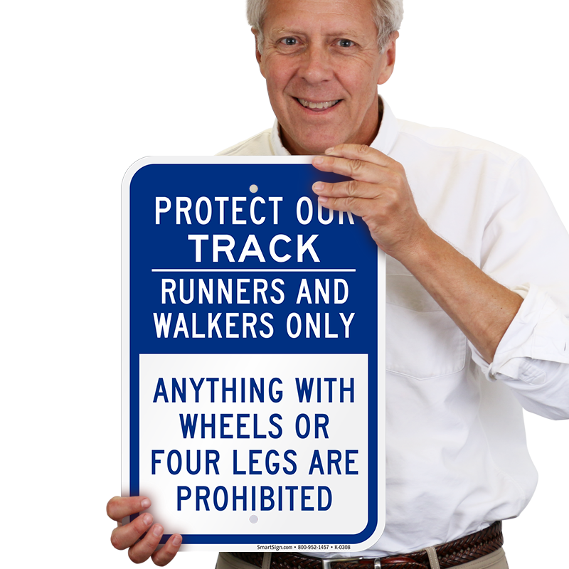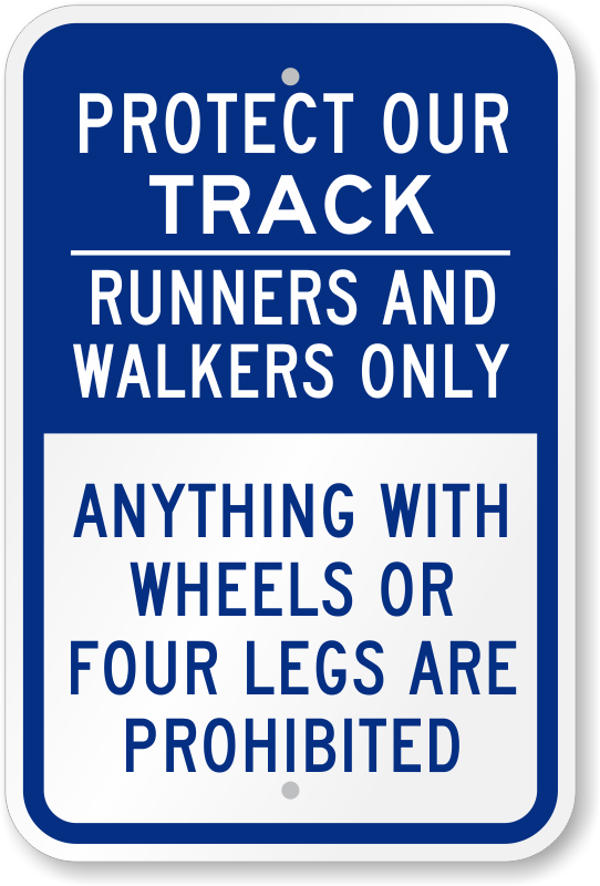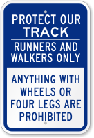Track sign: Protect Our Track - Runners And Walkers Only, Anything With Wheels Or Four Legs Are Prohibited K-0308