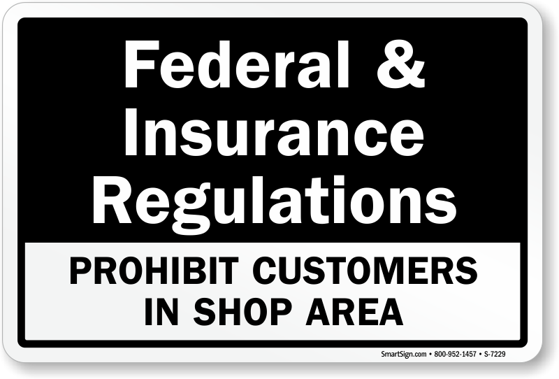 Regulatory Signs: Federal & Insurance Regulations, Prohibit Customers In Shop Area S-7229