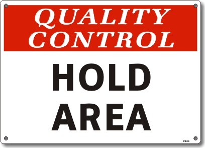 Use a "quality control: hold area" sign. A sign is proven and effective.