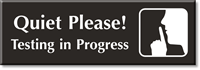 Loud voices can be distracting and discomforting during tests. Keep disturbances to a minimum by using a Quiet Please! Testing In Progress Engraved Sign.