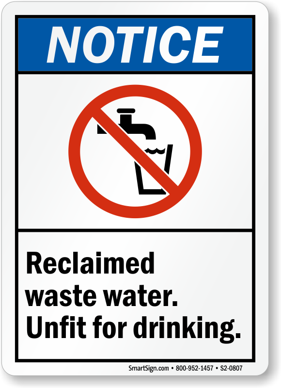 ANSI Notice Sign: Reclaimed Waste Water Unfit for Drinking