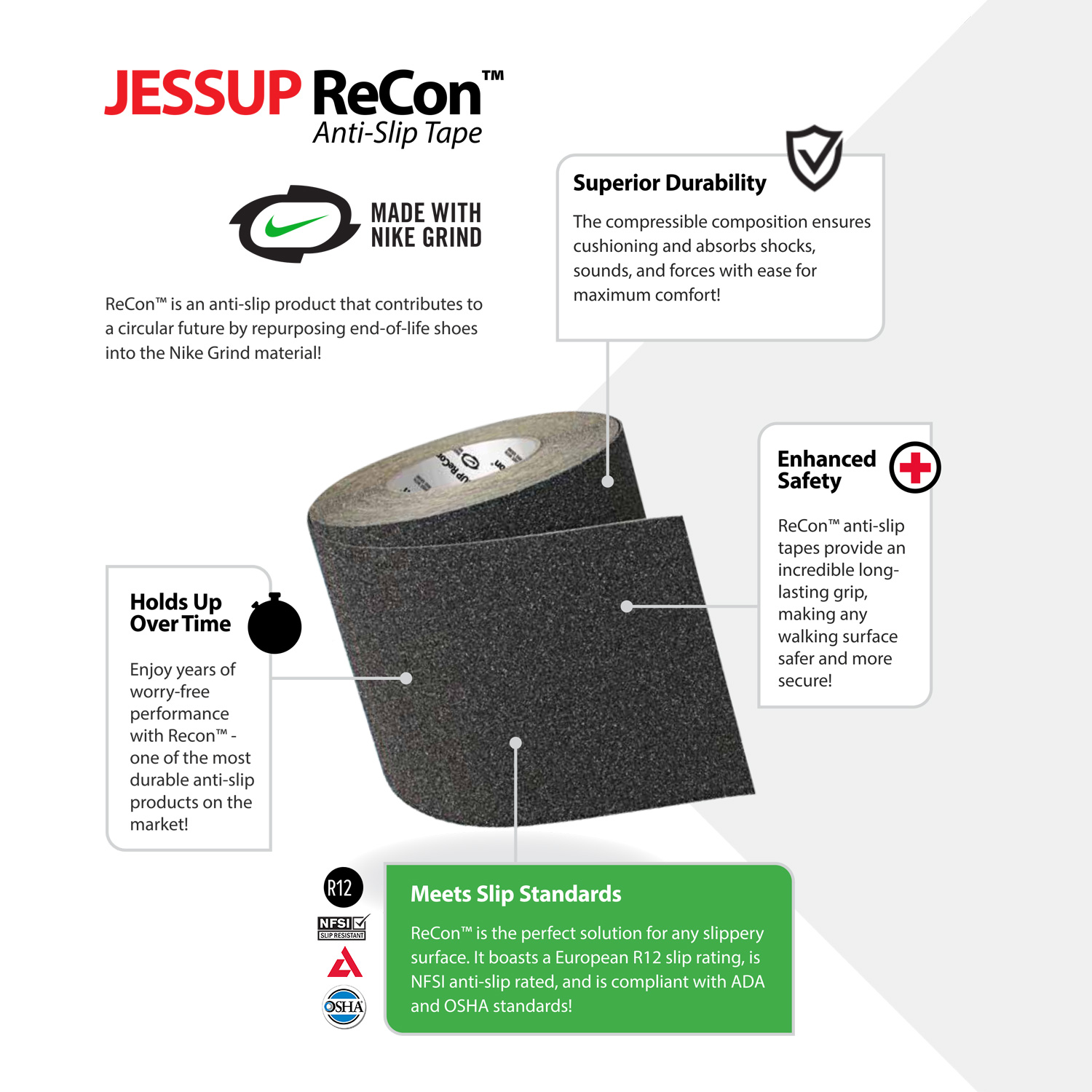 - Single rolls come in 34 mil ReCon Anti Slip Tape at 60ft in length.