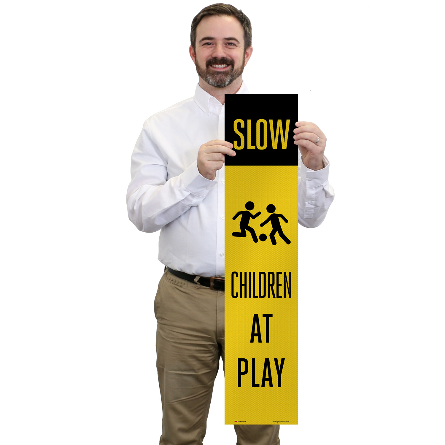 Features 3M reflective film for increased nighttime visibility. Two grades are available. 3M Engineer Grade reflects headlights well and can be seen at night. 3M High Intensity offers superior visibility, especially in an urban setting with other background lights.